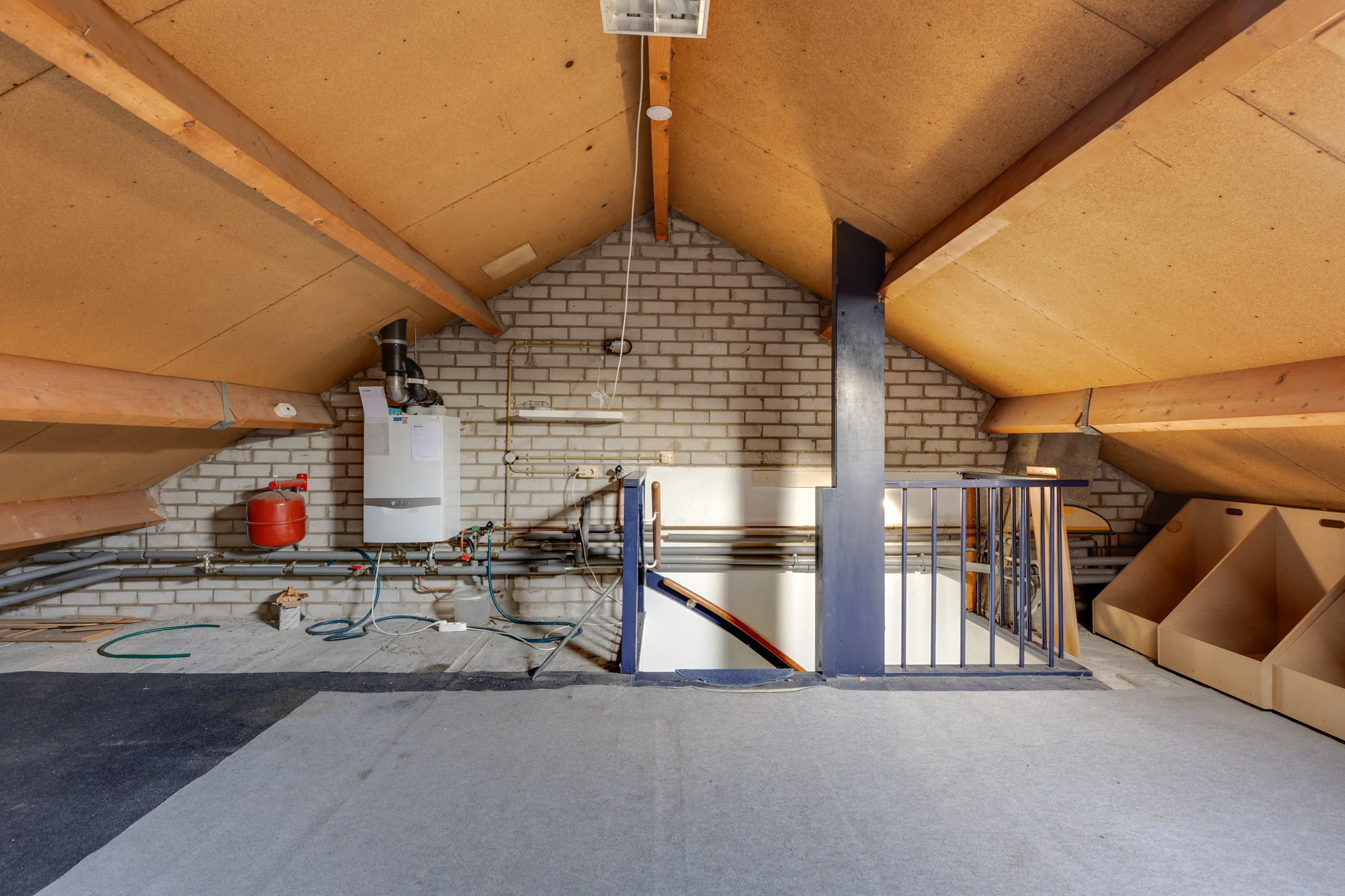 Via een vaste trap bereikt u de zolderverdieping. Dit is een open ruimte en biedt mogelijkheden voor bijvoorbeeld een extra slaapkamer of werkkamer.