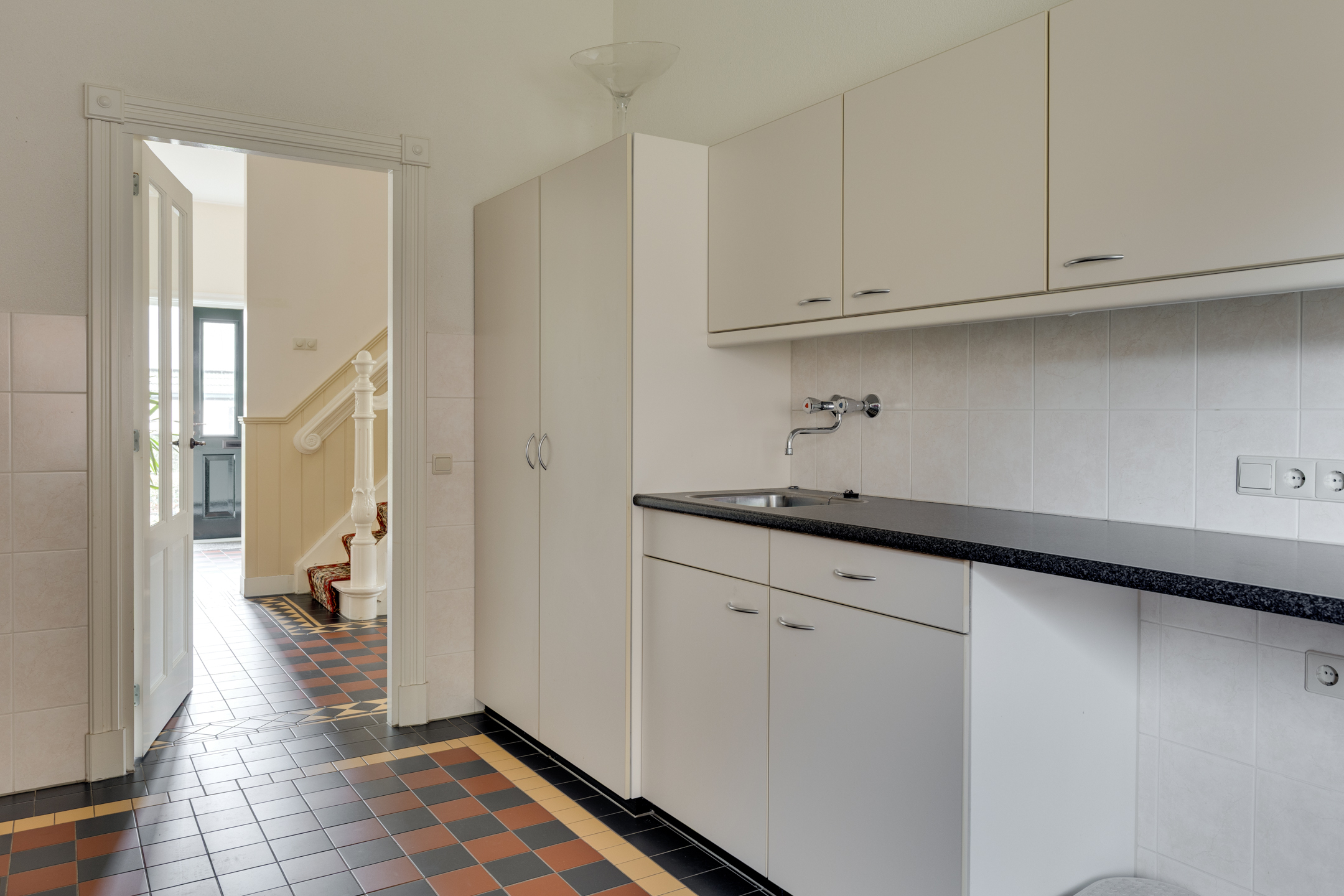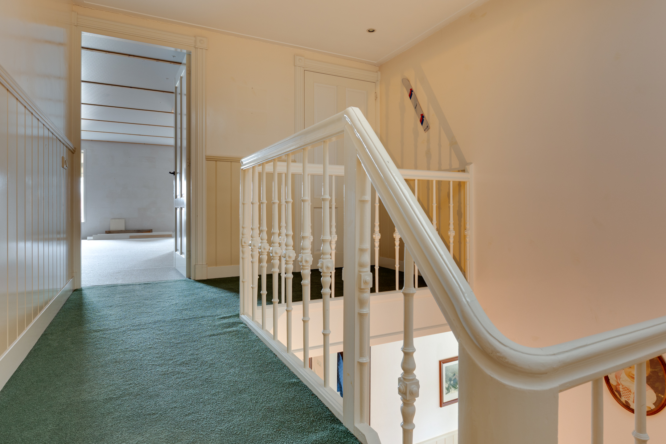 De eerste verdieping is te bereiken middels een sfeervolle trap met loper die het karakter van de woning benadrukt. De verdieping is nu in gebruik als zolderberging maar biedt ruimte om meerdere slaapkamers te creëren.