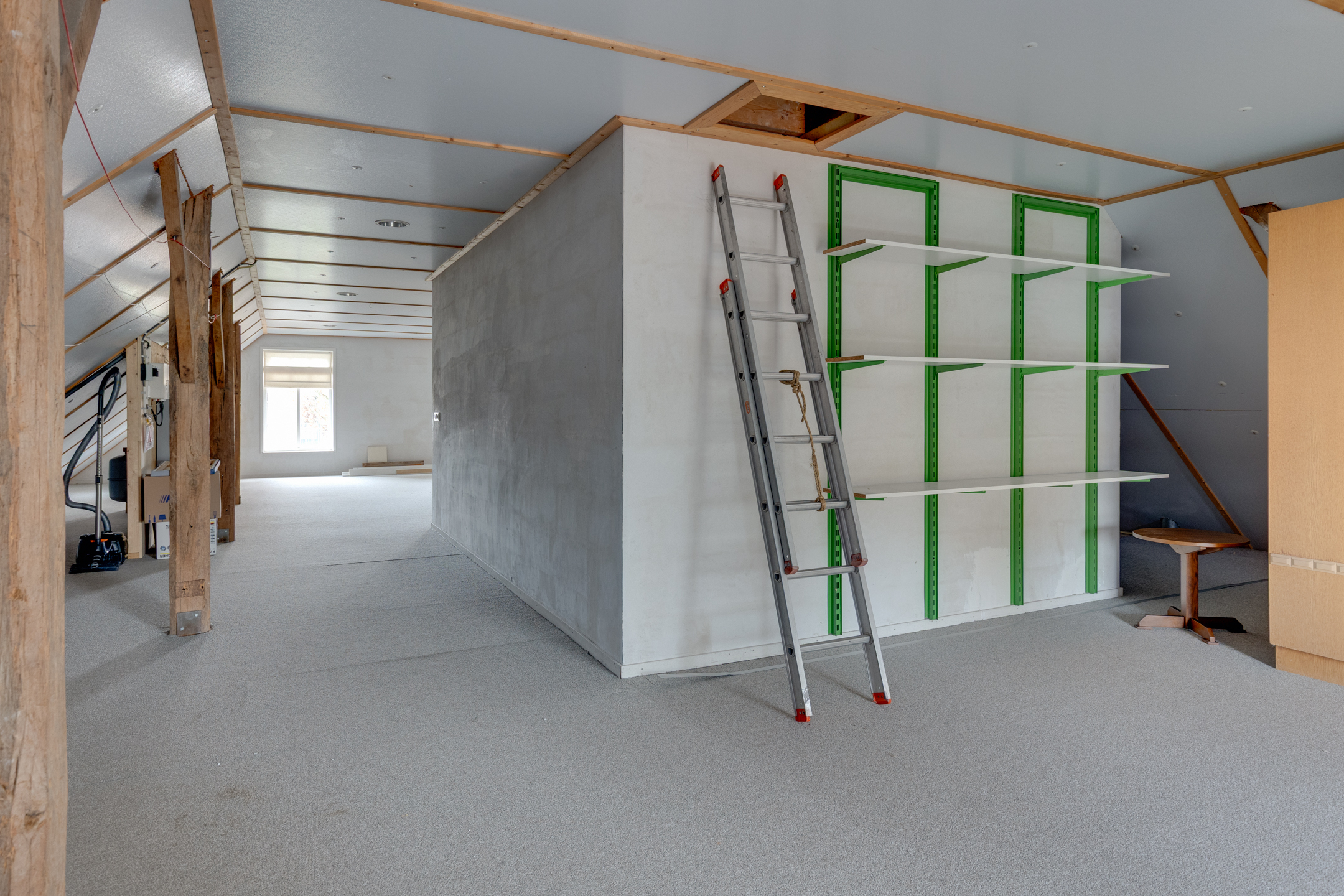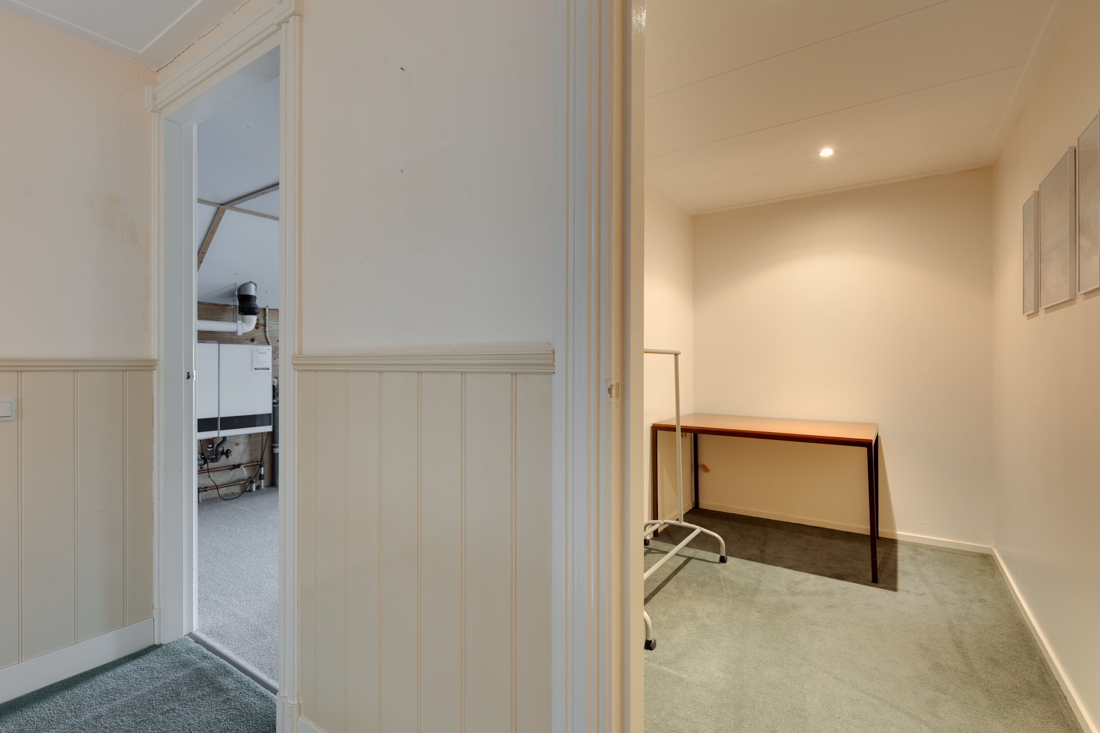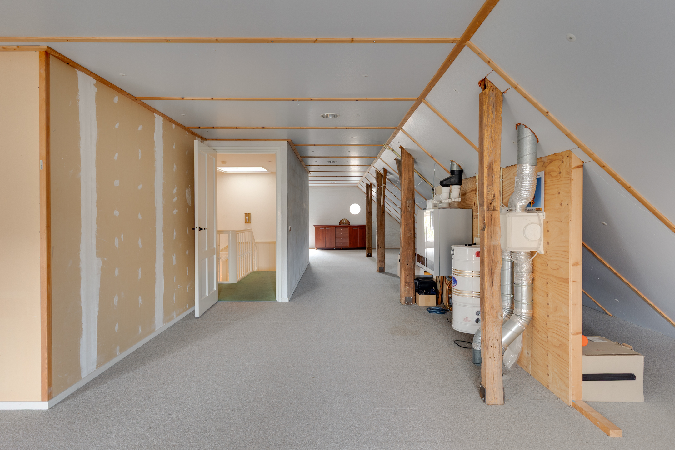 1e VERDIEPING: overloop, kantoorruimte, ruime bergzolder met opstelplaats voor een HR combi-ketel, mechanische ventilatie, centraal stofzuigsysteem, omvormer zonnepanelen en een aparte kantoorruimte.
