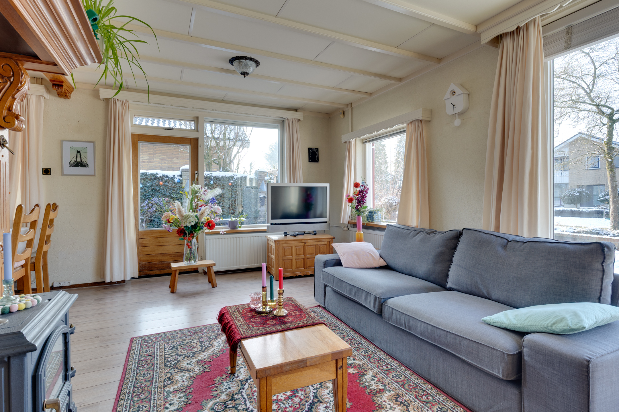 De leefruimtes zijn gesitueerd aan de zonzijde, waardoor de woning profiteert van veel natuurlijk licht. Vanuit de lichte woonkamer zijn er lange zichtlijnen over de wijk, wat zorgt voor een ruimtelijk en vrij gevoel.