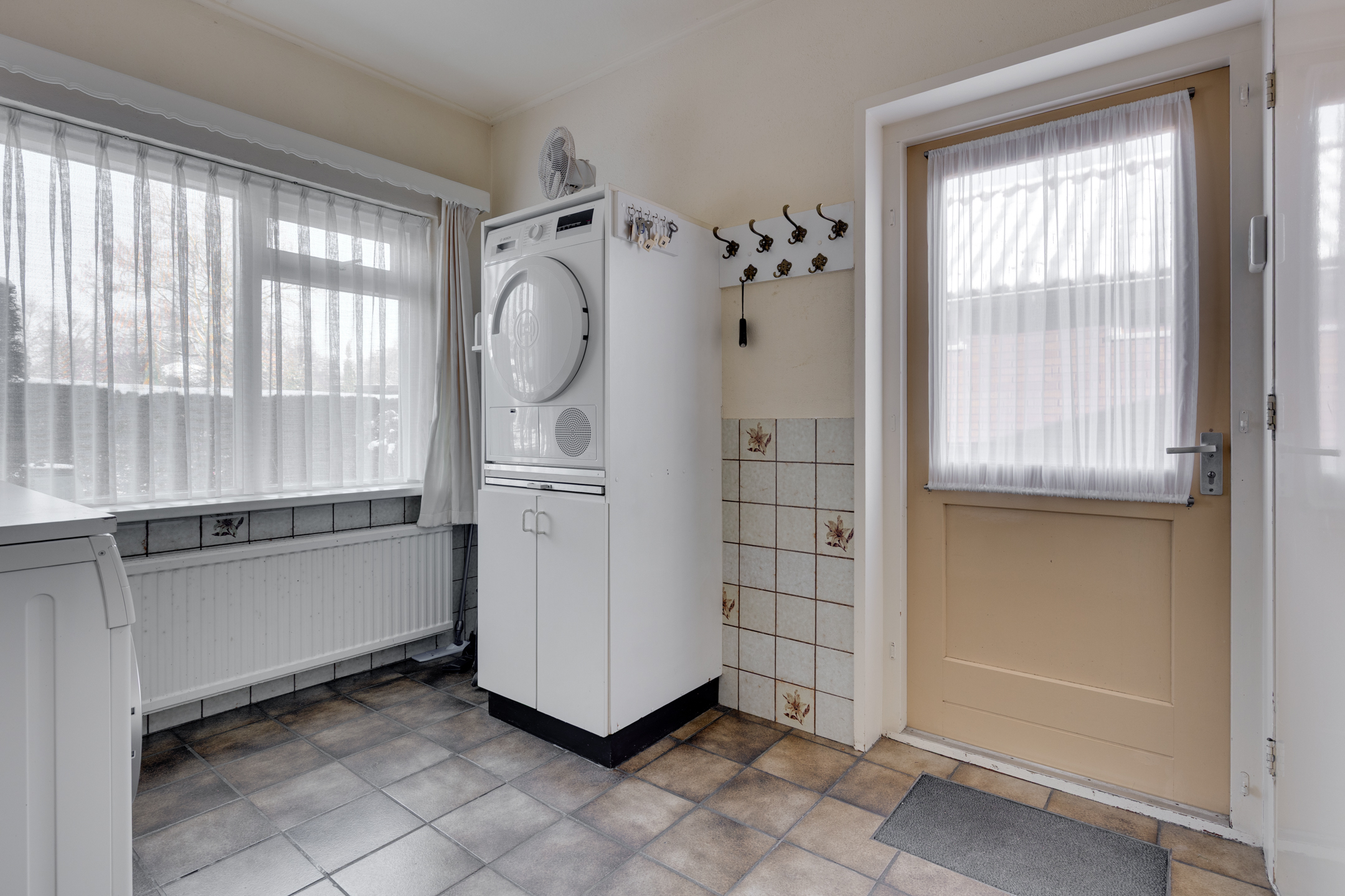 BEGANE GROND: Entree/ hal, meterkast, toilet; eet- woonkamer; keuken; slaapkamer; badkamer v.v. wastafel, douche en ligbad; bijkeuken v.v. fontein en wasmachine aansluiting en toegang tot de achtertuin; berging/ kantoor; garage.
