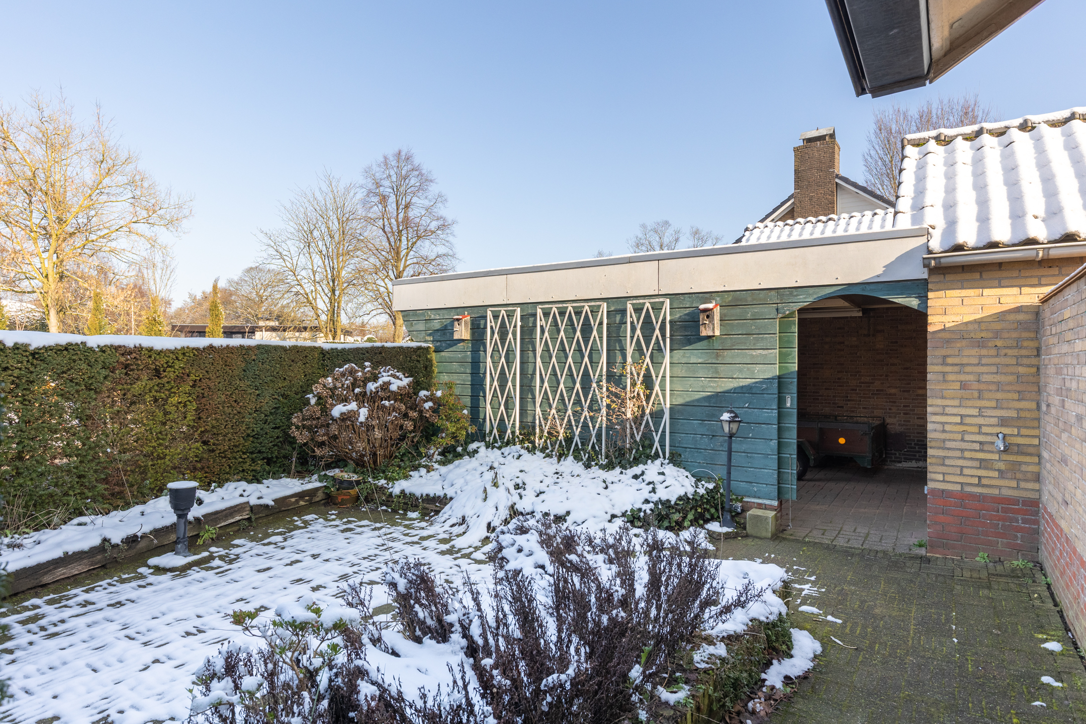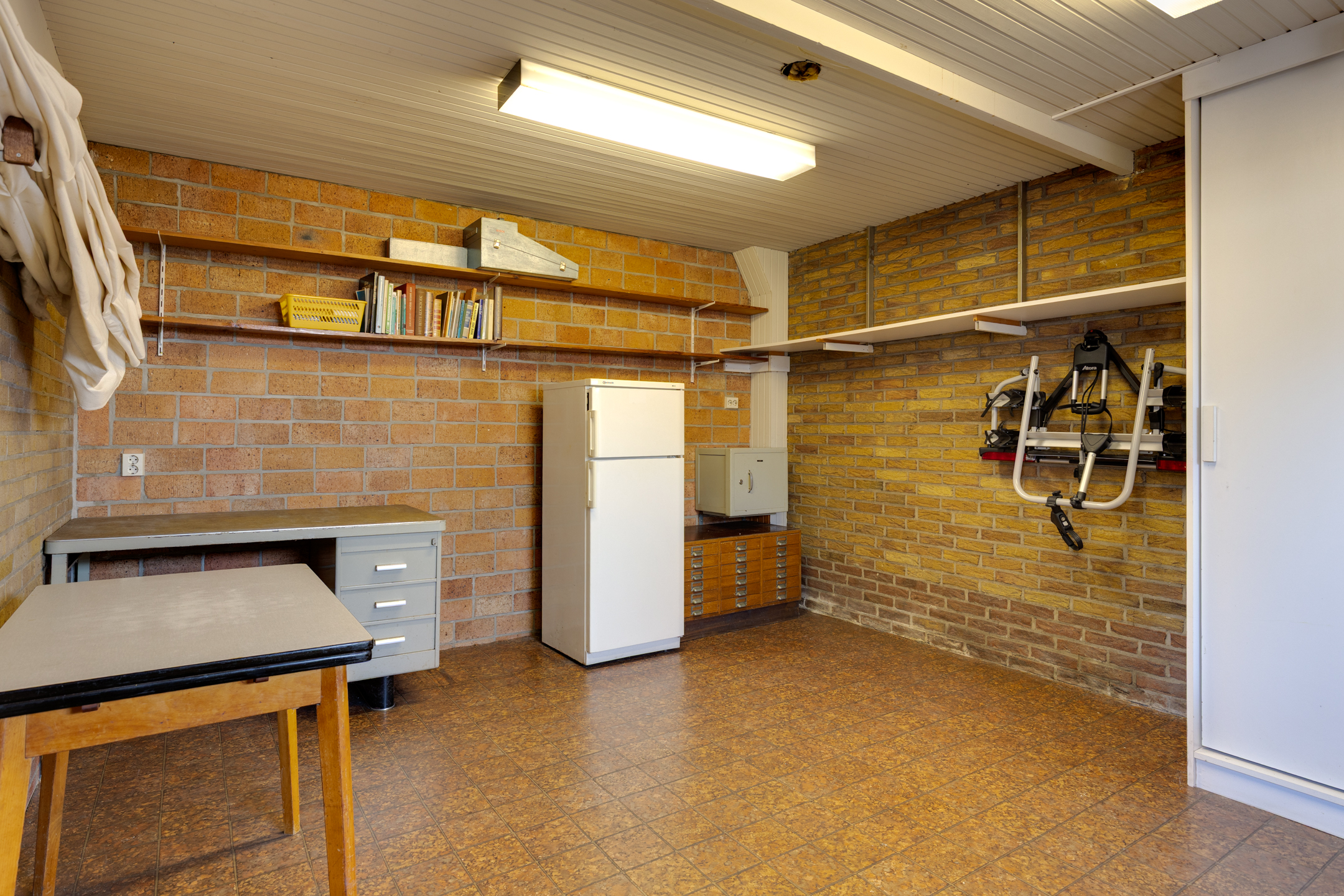 Op de verdieping bevindt zich een praktische logeerruimte, ideaal voor gasten of hobbygebruik. Daarnaast beschikt de woning over een garage met aangebouwde carport en een kantoorruimte c.q. berging, perfect voor thuiswerken of extra opslag.