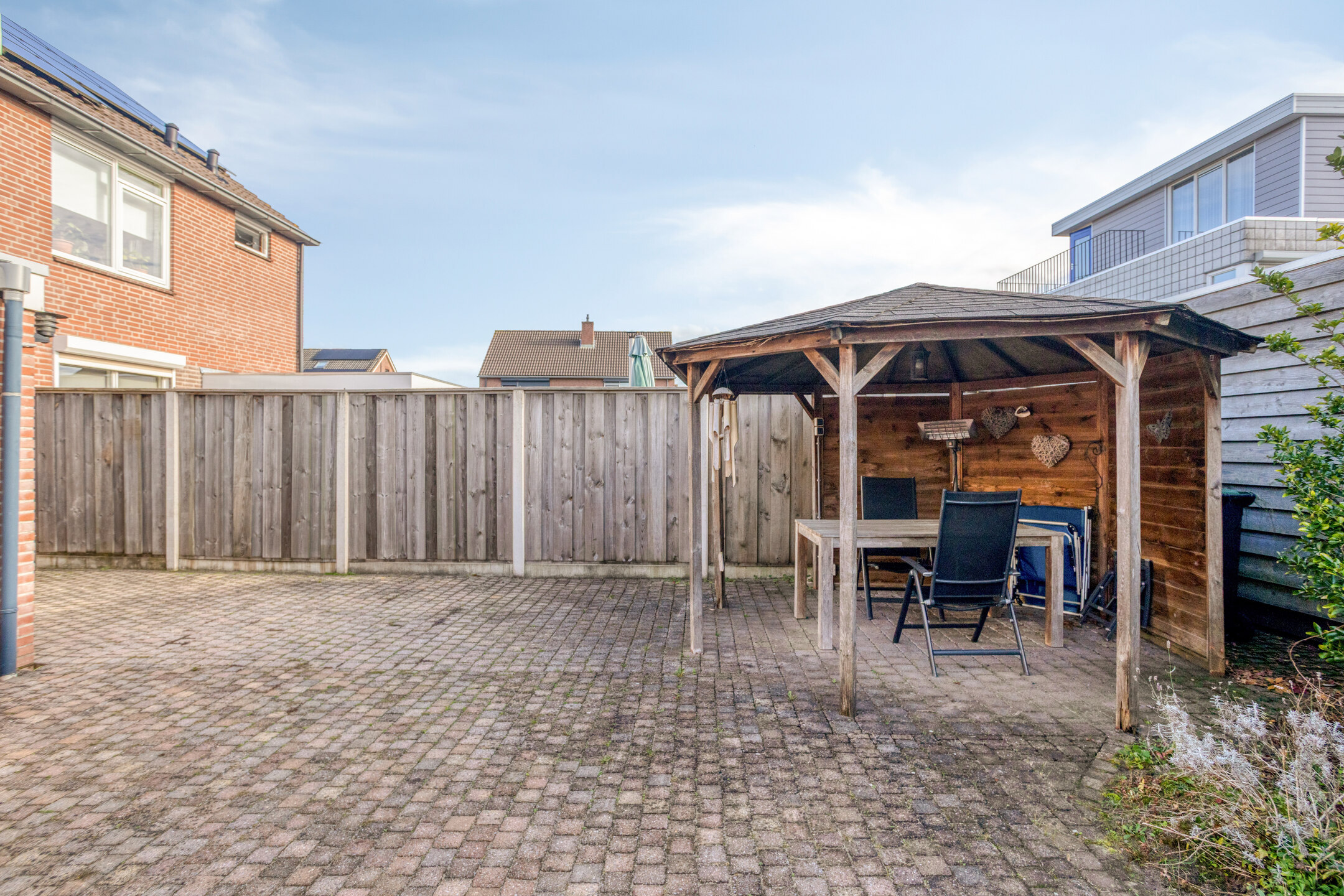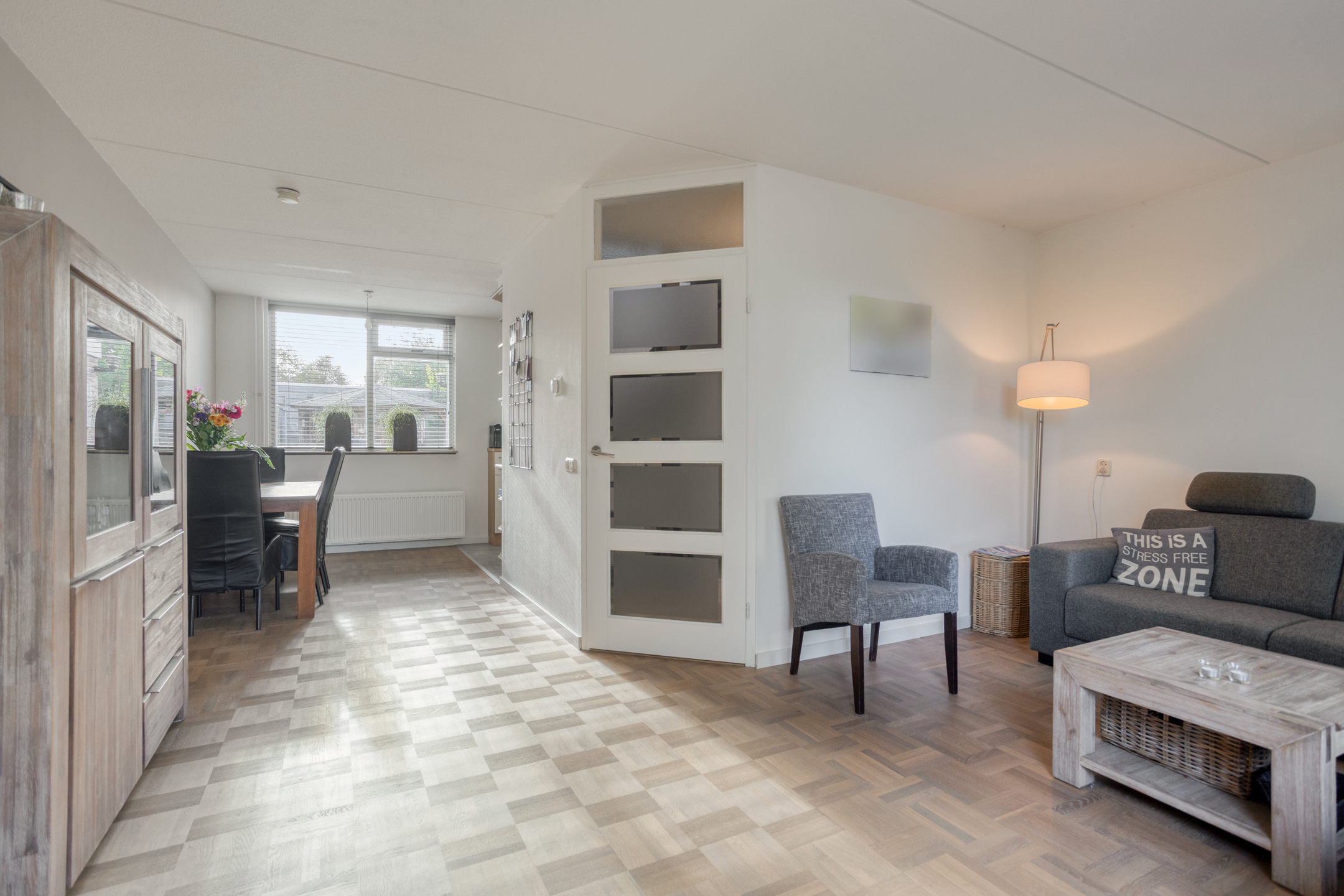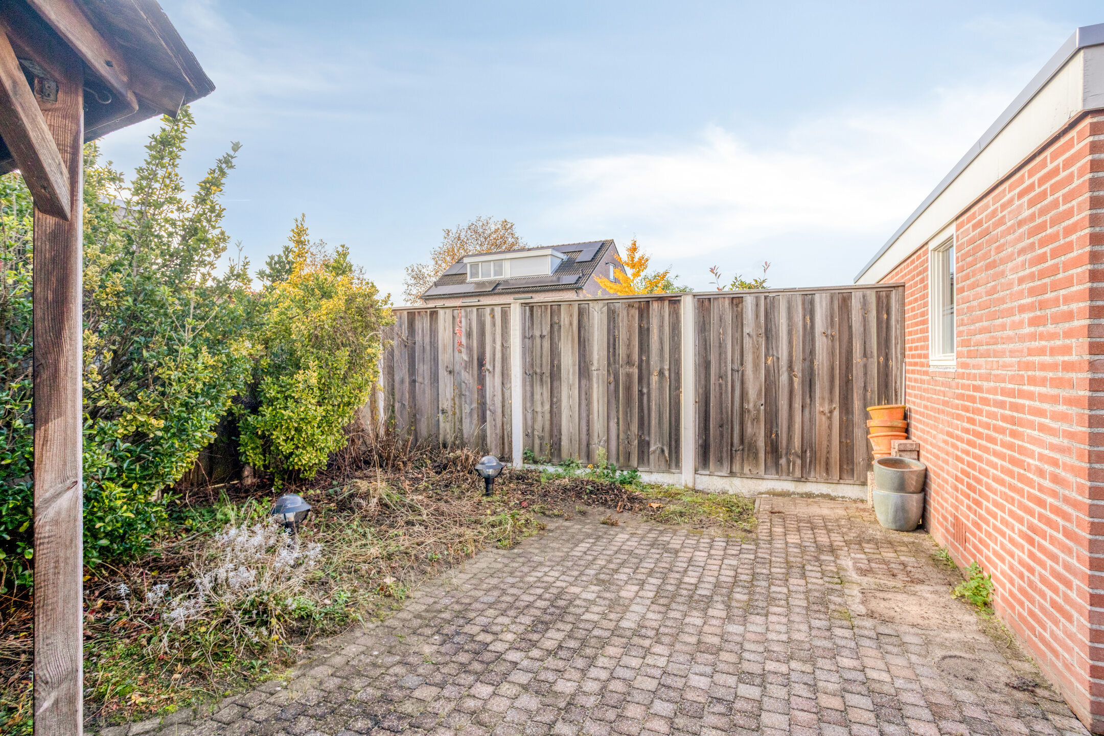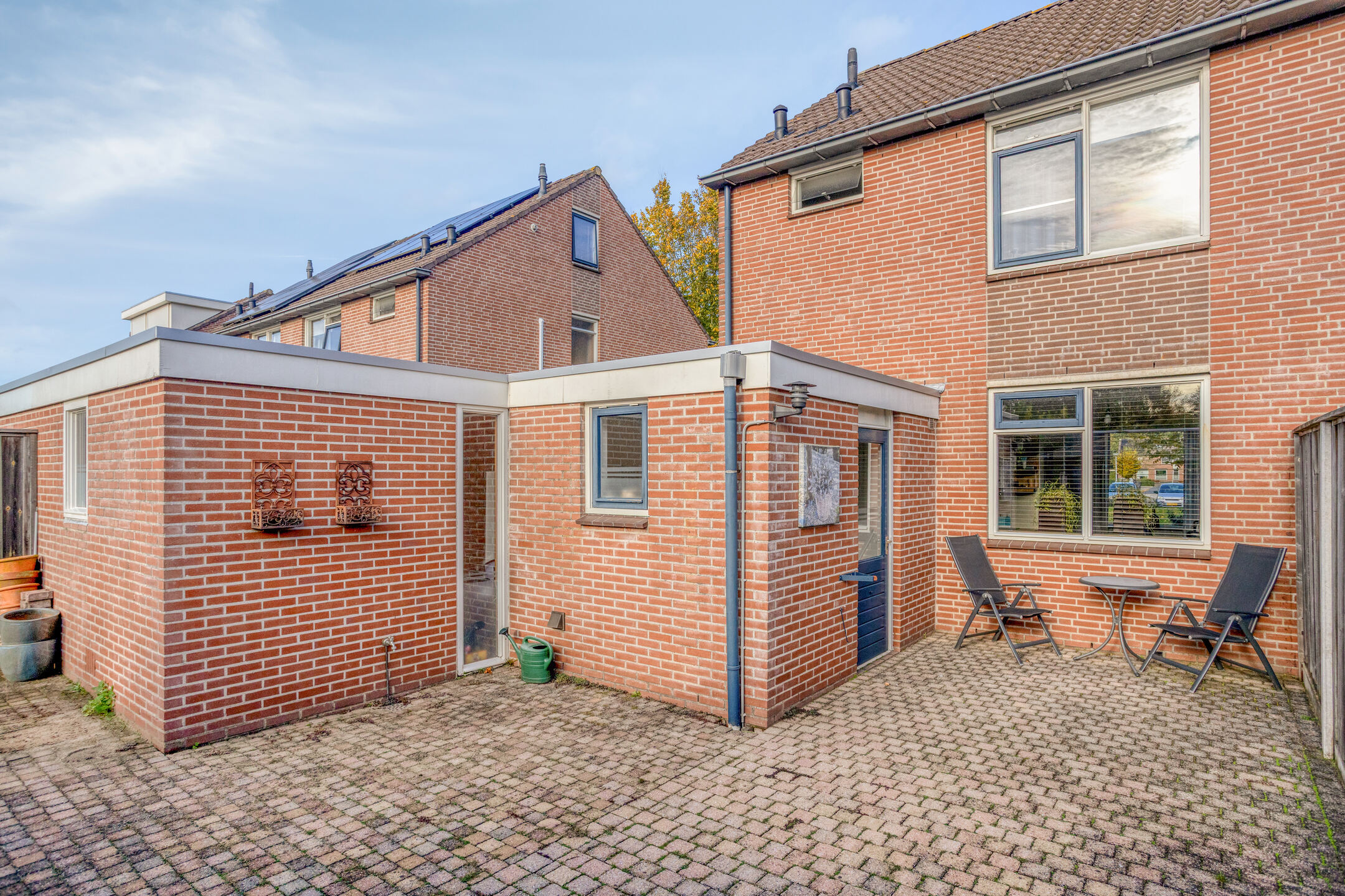 Nieuwe eigenaar gezocht! Deze geschakelde twee-onder-een-kapwoning gelegen in een rustige ruim opgezette woonwijk met aangebouwde bijkeuken, garage en carport. De woning beschikt over een achtertuin met een gezellige houten overkapping. Via de hal, waar zich ook de toilet en de trapopgang bevindt, bereikt men de straatgerichte woonkamer met de fraaie houten Bruynzeel vloer en vele raampartijen. Aansluitend bevindt zich het eetgedeelte met toegang tot de open keuken, die uitzicht biedt op de achtertuin. In de uitbouw is een praktische bijkeuken gerealiseerd, voorzien van aansluitingen voor wasmachine en droger. De garage (ruim 8 meter diep) beschikt over twee openslaande deuren en biedt veel extra bergruimte. Op de eerste verdieping zijn drie slaapkamers gerealiseerd en een badkamer voorzien van een ligbad, douche, tweede toilet en wastafel. Via een vaste trap is de tweede verdieping bereikbaar; deze dient momenteel als zolderberging, maar biedt de mogelijkheid tot het realiseren van een vierde slaapkamer of werk-/hobbyruimte. De veel privacy biedende achtertuin is grotendeels beklinkerd en voorzien van een houten overkapping.