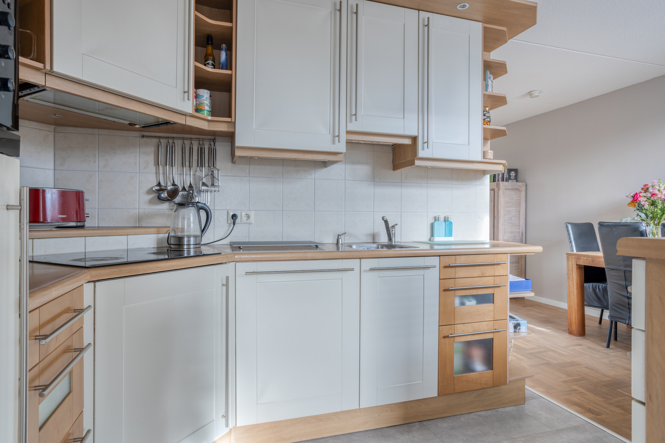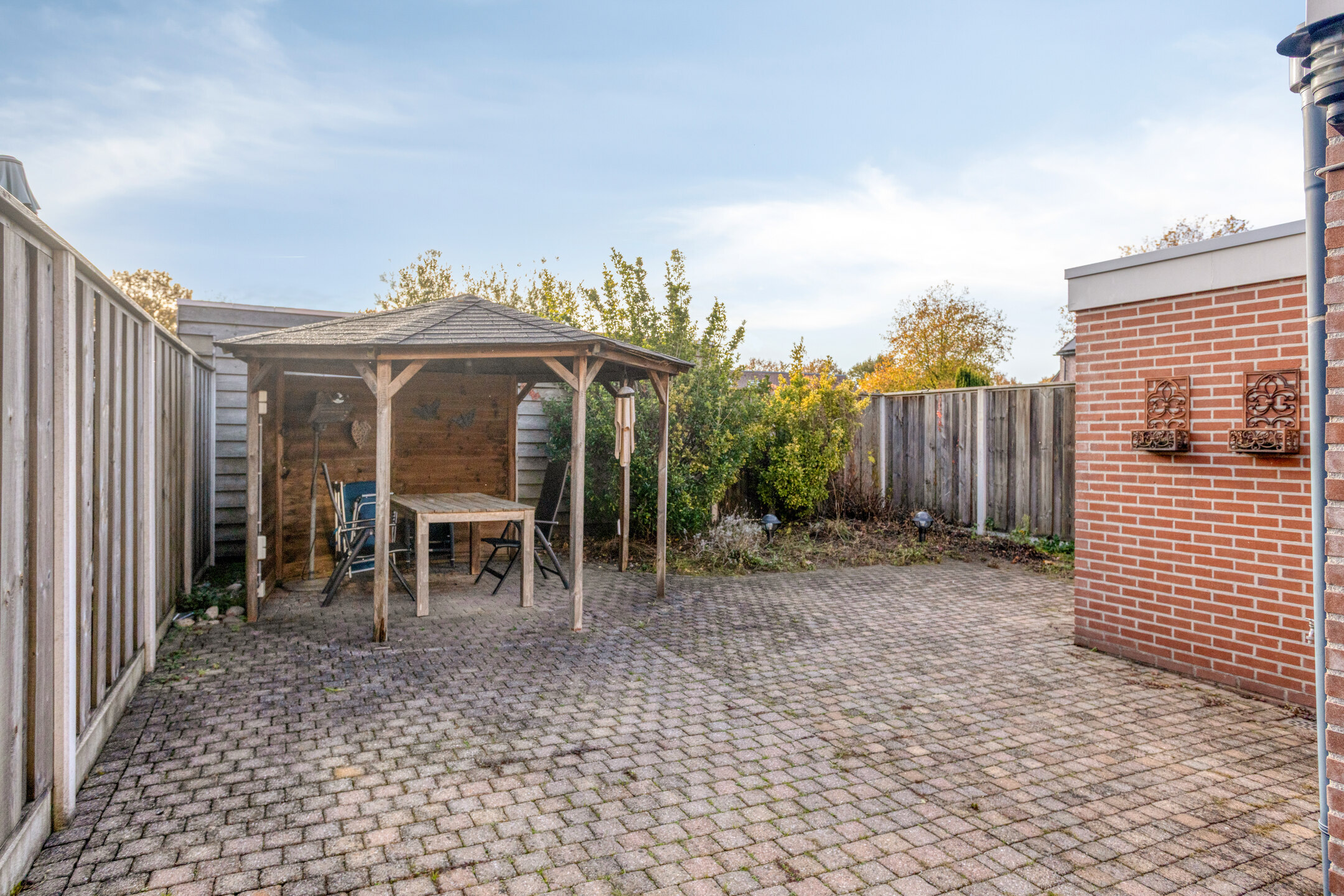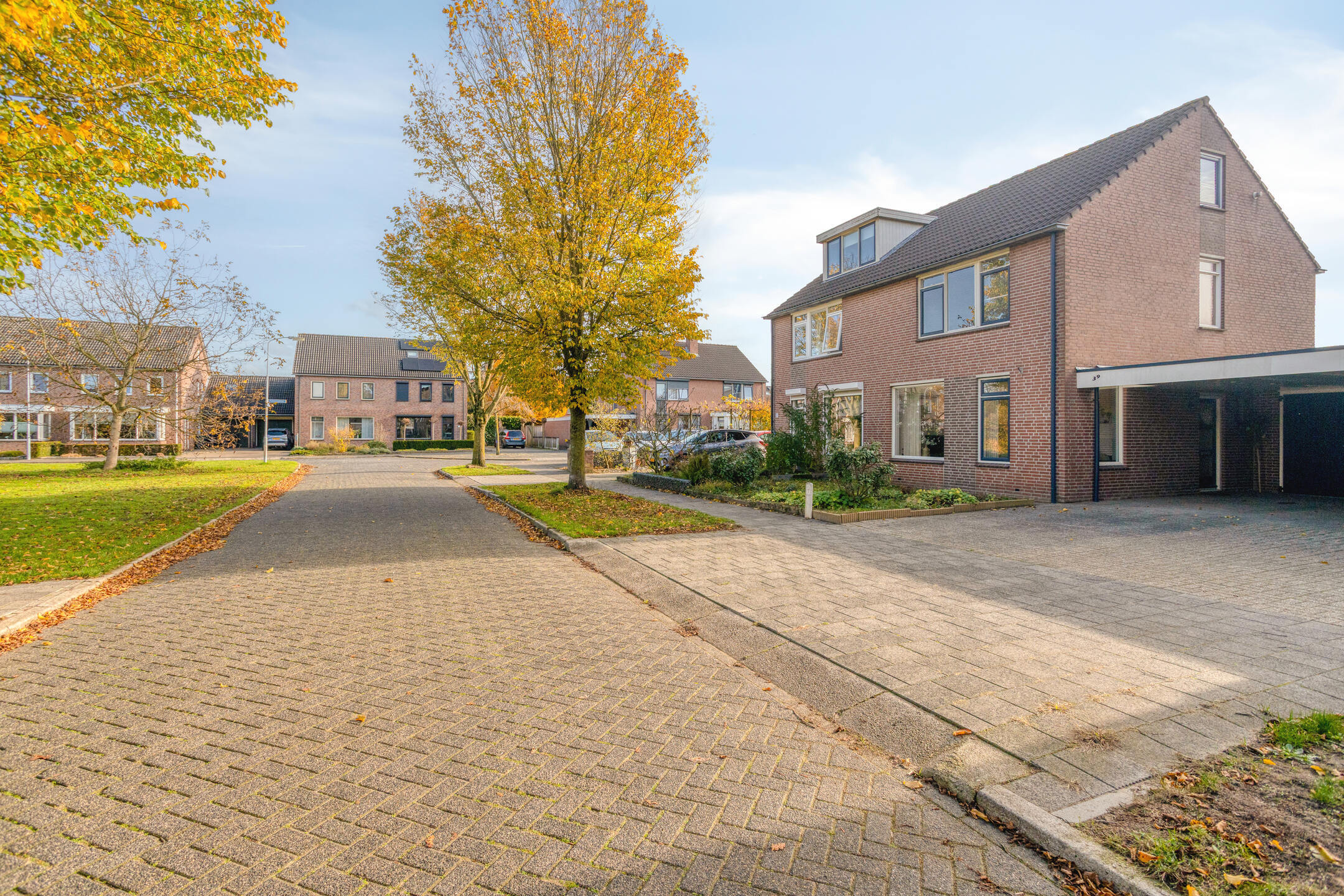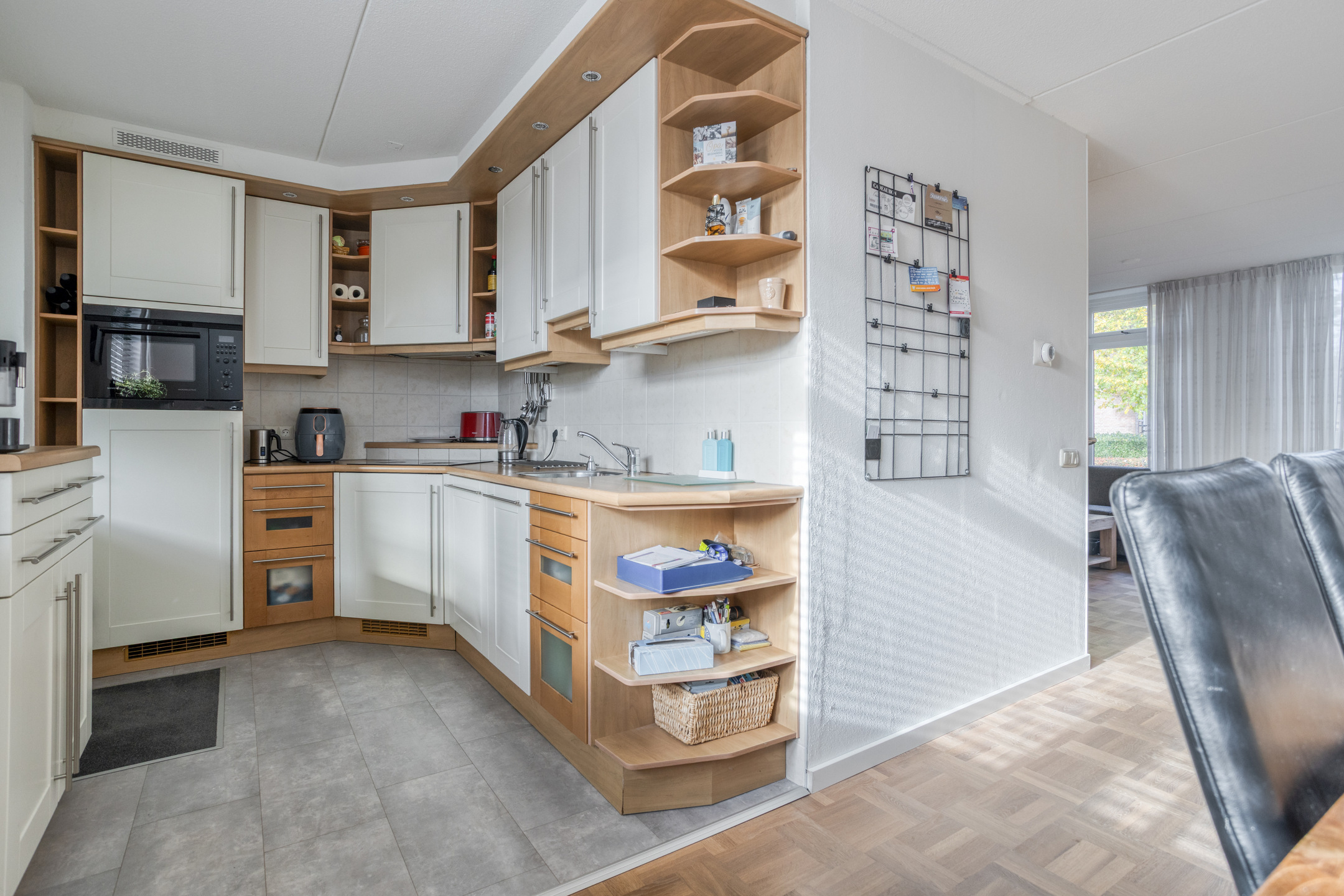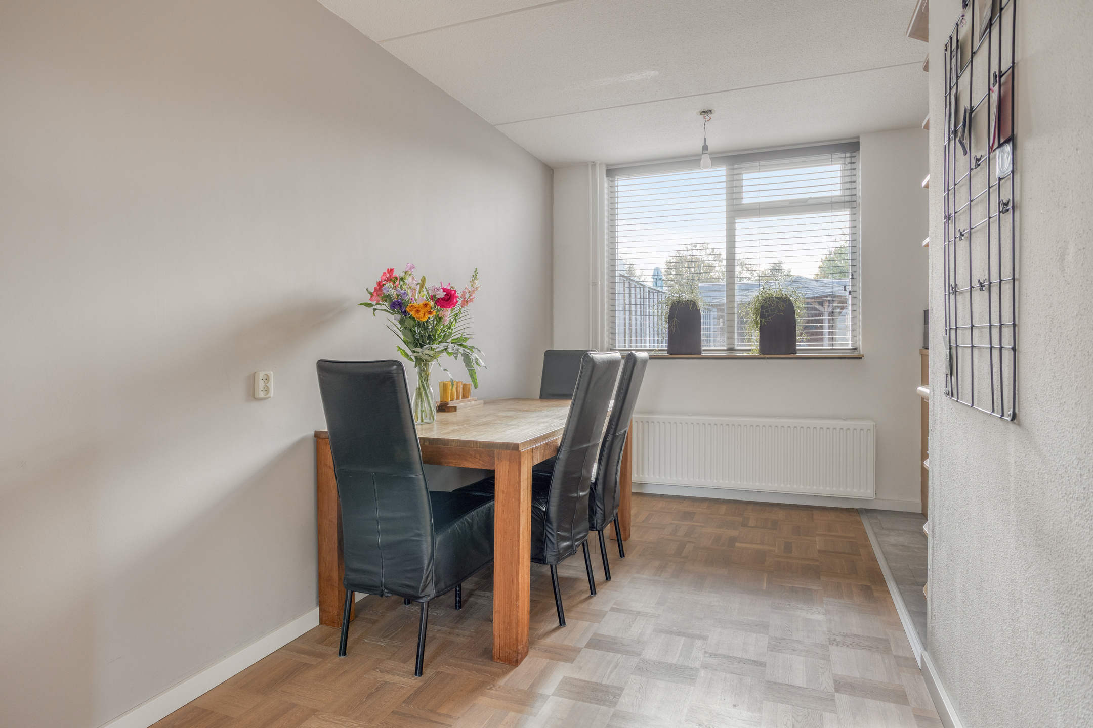 Nieuwe eigenaar gezocht! Deze geschakelde twee-onder-een-kapwoning gelegen in een rustige ruim opgezette woonwijk met aangebouwde bijkeuken, garage en carport. De woning beschikt over een achtertuin met een gezellige houten overkapping. Via de hal, waar zich ook de toilet en de trapopgang bevindt, bereikt men de straatgerichte woonkamer met de fraaie houten Bruynzeel vloer en vele raampartijen. Aansluitend bevindt zich het eetgedeelte met toegang tot de open keuken, die uitzicht biedt op de achtertuin. In de uitbouw is een praktische bijkeuken gerealiseerd, voorzien van aansluitingen voor wasmachine en droger. De garage (ruim 8 meter diep) beschikt over twee openslaande deuren en biedt veel extra bergruimte. Op de eerste verdieping zijn drie slaapkamers gerealiseerd en een badkamer voorzien van een ligbad, douche, tweede toilet en wastafel. Via een vaste trap is de tweede verdieping bereikbaar; deze dient momenteel als zolderberging, maar biedt de mogelijkheid tot het realiseren van een vierde slaapkamer of werk-/hobbyruimte. De veel privacy biedende achtertuin is grotendeels beklinkerd en voorzien van een houten overkapping.