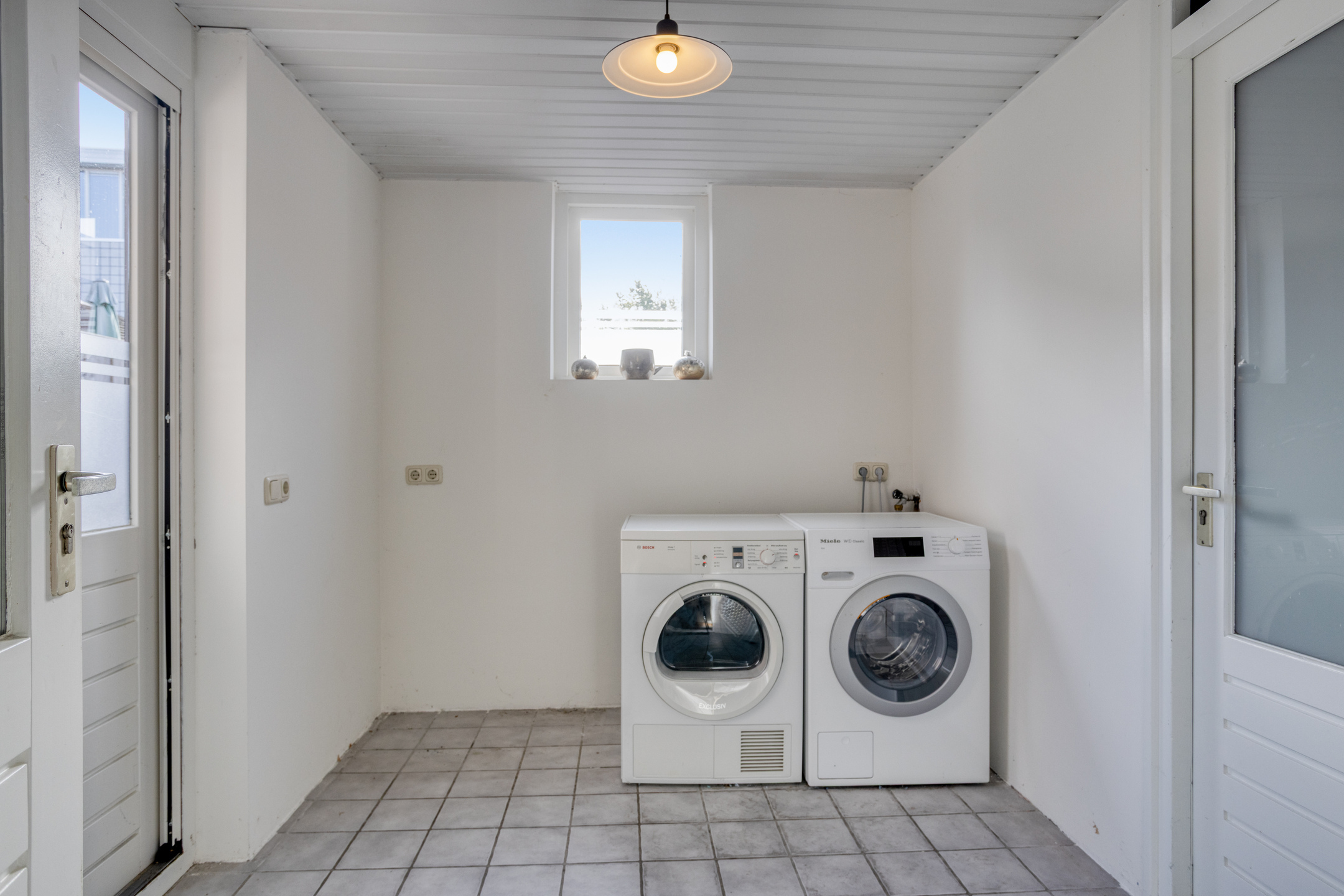 Begane grond: entree met toilet en trapopgang; woonkamer met eetgedeelte en open keuken met diverse inbouwapparaten (inductiekookplaat, afzuigkap, vaatwasser, koelkast en combi- magnetron); bijkeuken met wasmachine- en drogeraansluiting; royale garage met c.v.-installatie.